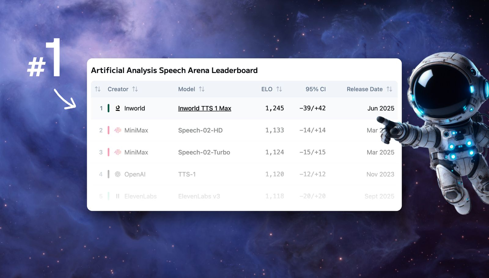 Inworld TTS 1 Max, running on the Modular Platform, claimed the top spot on the Artificial Analysis Speech Leaderboard—with 70% faster latency and 60% lower costs. This means production-ready text-to-speech that's both higher quality and more economical than alternatives, proving that performance and cost efficiency don't have to be tradeoffs.