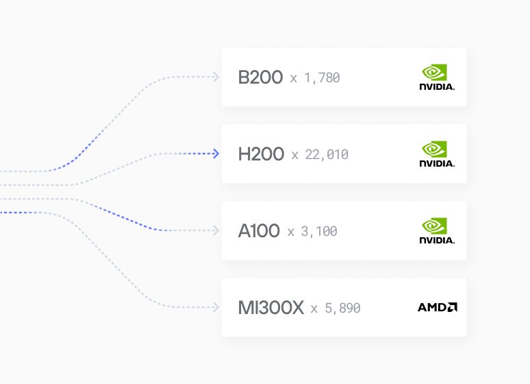 Multi-Vendor Kubernetes Deployments: Enterprises gain the freedom to deploy across mixed GPU fleets thanks to Mammoth - Modular's Kubernetes-native cloud infrastructure that allows you to deploy, scale and manage your GenAI applications with state of the art performance across NVIDIA and AMD GPUs, optimizing for cost, availability, and workload requirements without code changes.